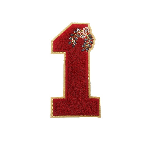 Applicazione numero "1" Grande in Spugna con Ricamo Termoadesivo