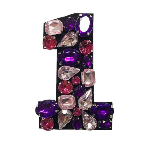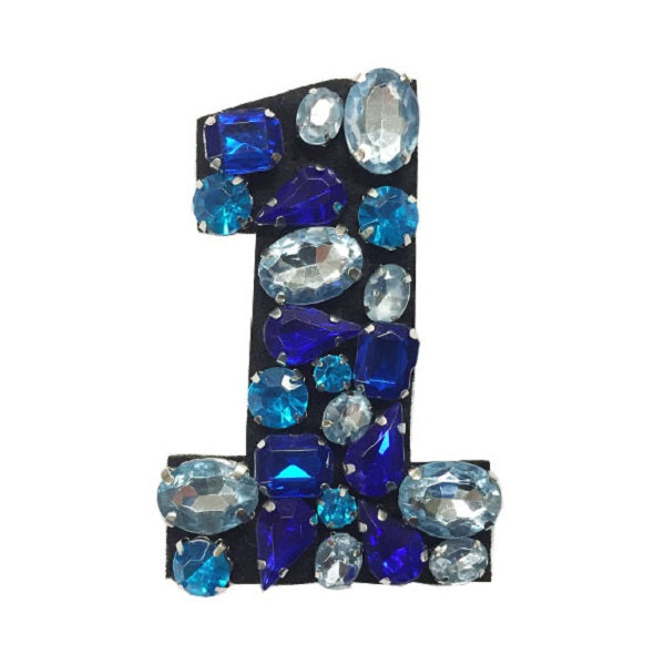 Toppa termoadesiva ricamata con pietre colorate numero uno.