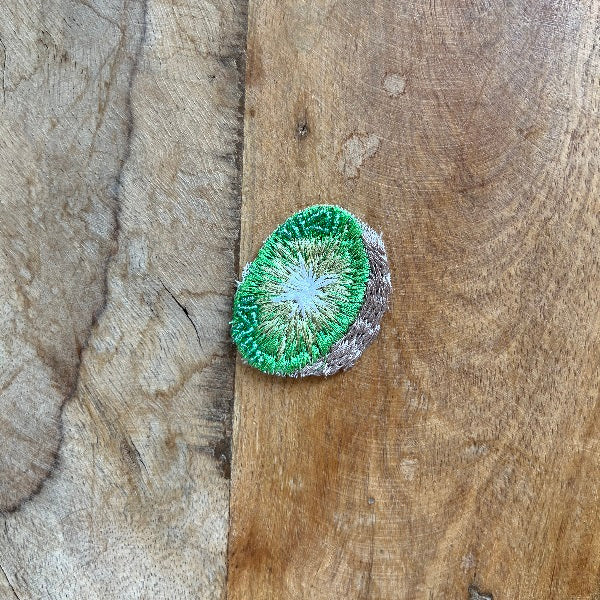 Toppa termoadesiva a forma di kiwi con ricamo corallini.