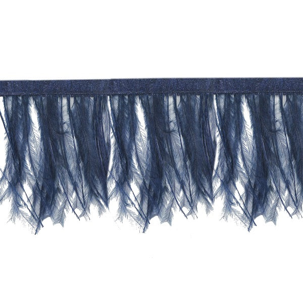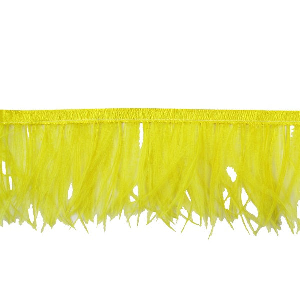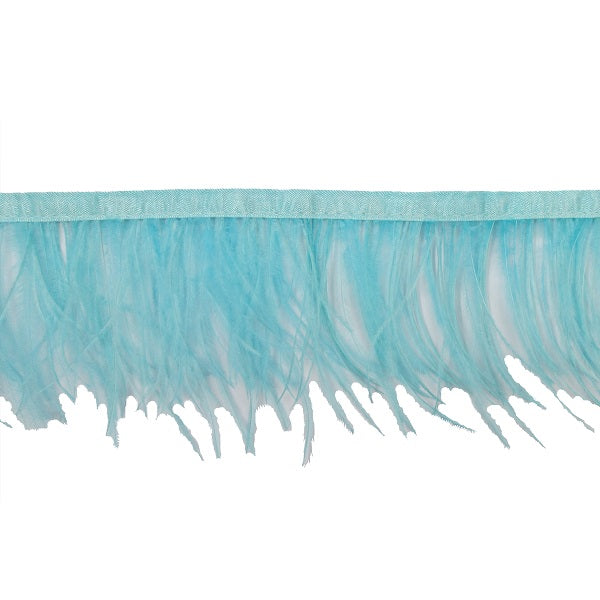 Passamaneria frangia piume struzzo disponibile in diversi colori. Le piume di struzzo sono cucite a un nastro di raso alto circa 1cm nello stesso tono della frangia. La frangia piuma di struzzo venduta al metro è ideale per decorare costumi, abiti fai da te ed è disponibile in diversi colori tra cui il nero, crema, giallo, corallo, turchese, blue, petrolio.