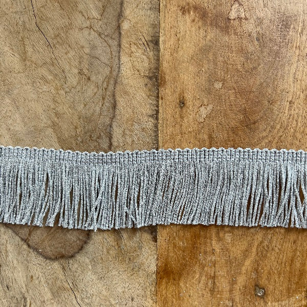 Passamaneria frangia tripolino lurex argento alta 5 cm
