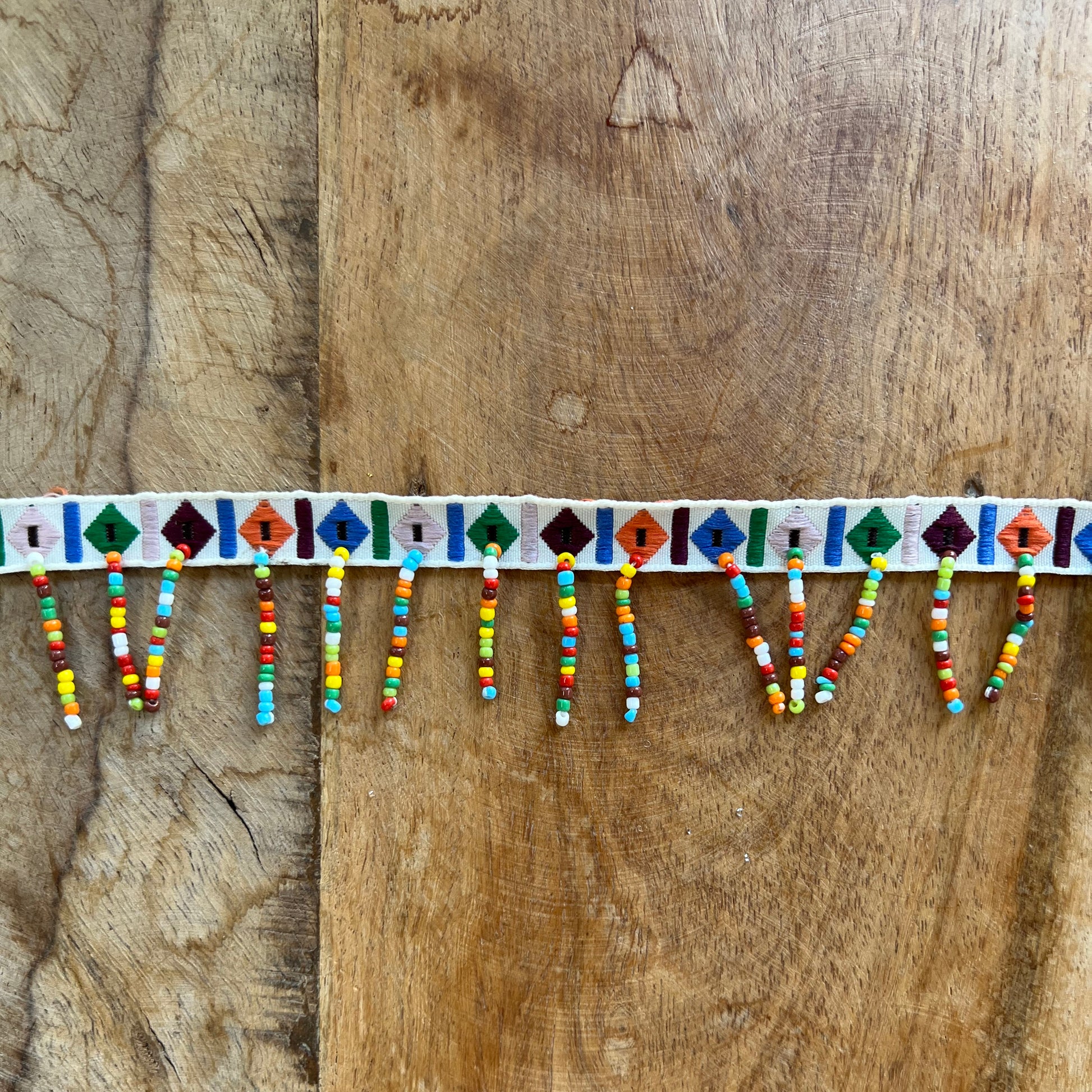 Frangia passamaneria con corallini e bordo nero realizzata a mano.
