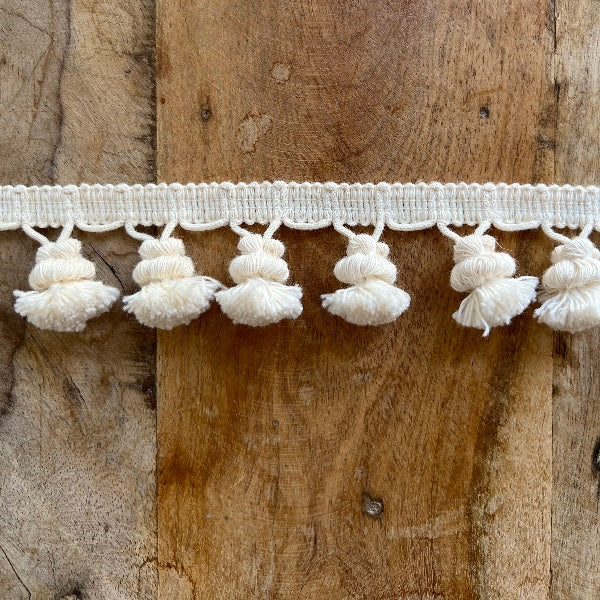 Passamaneria frangia pon pon nappine in cotone ideale per accessoriare abiti oppure per tende e tovaglia.