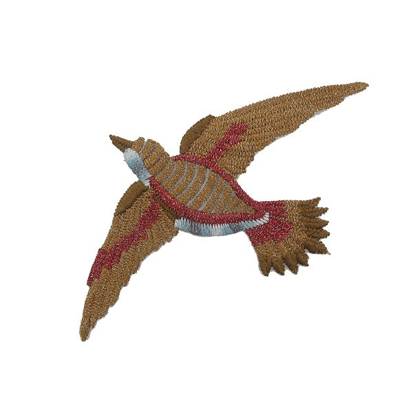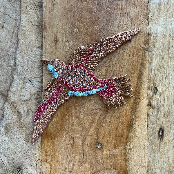 Applicazione toppa termoadesiva uccello con ricamo lurex.