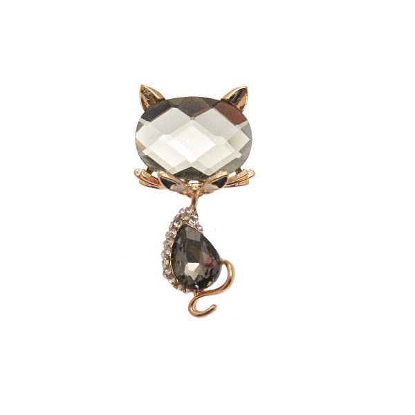 Spilla gatto gioiello con pendente. Questa spilla, in vendita online è ideale per decorare qualsiasi abito. La forma di gatto rende simpatico ed elegante il tuo vestito. Compra subito la spilla a forma di gatto.