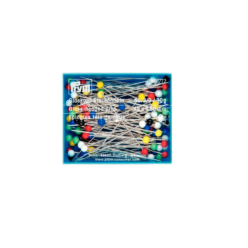 Spilli con testa di vetro colorato della Prym codice 029212. Misura 48x 0.80mm.La confezione contiene 100pz.