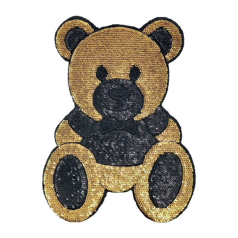 Patch termoadesivo con pailettes nel colore oro e nero in vendita online.